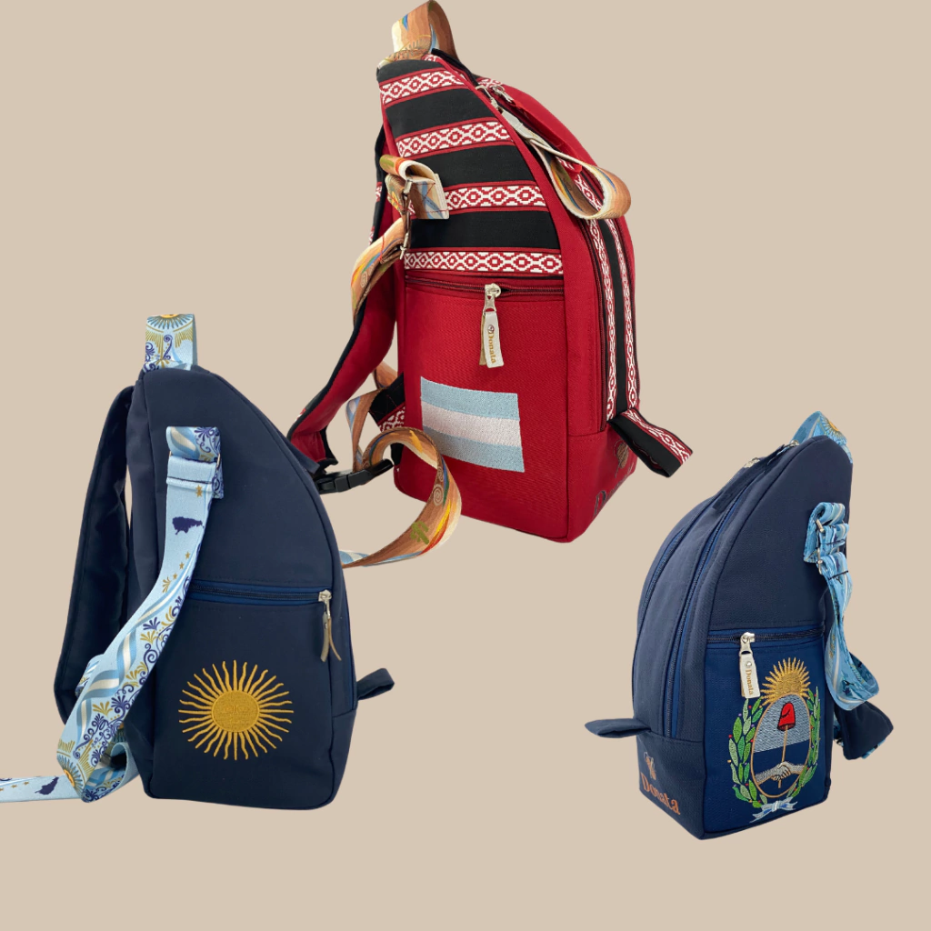 No solo tiene bordado Argento, tiene tela guarda pampa y las cintas son con estampados de Argentina como puede ser el Norte Argentino y el sur argentino.
