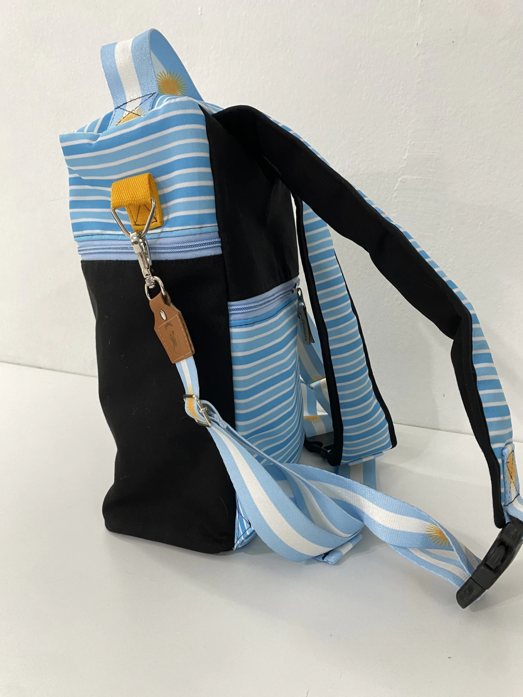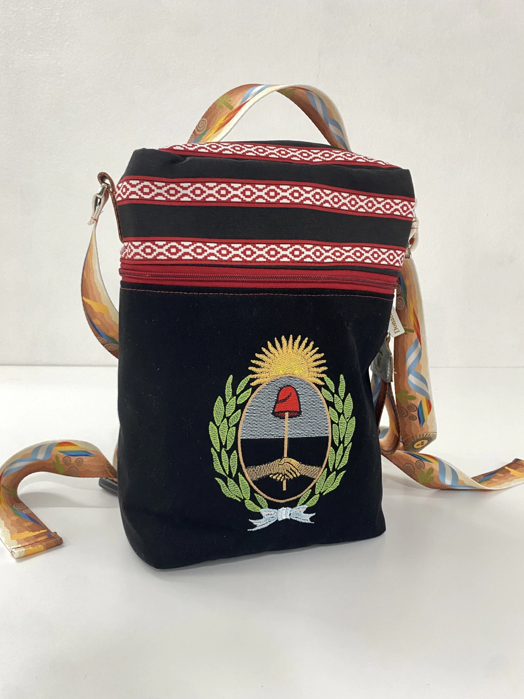 No solo tiene bordado Argento, tiene tela guarda pampa y las cintas son con estampados de Argentina como puede ser el Norte Argentino y el sur argentino.