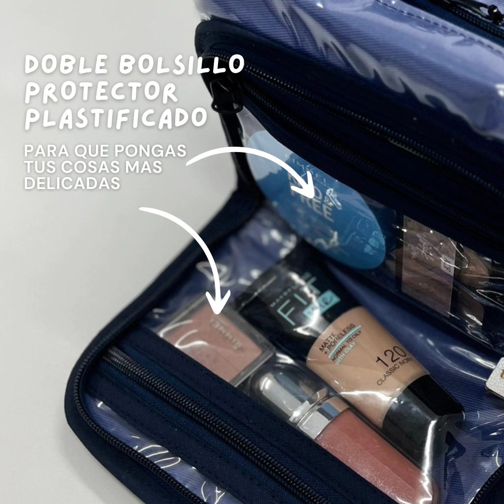 Este neceser es ideal para todas aquellas personas que tienen necesitan un neceser donde llevar todos sus escenciales, shampoo, acondicionador, jabones, pasta de dientes, ENTRA TODO Y MUCHO MÁS.