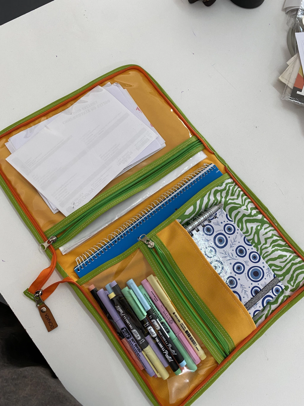 Para que te organices de la mejor manera, cuenta con una mini cartuchera transparente, una solapa con cierre y otra sin cierre.