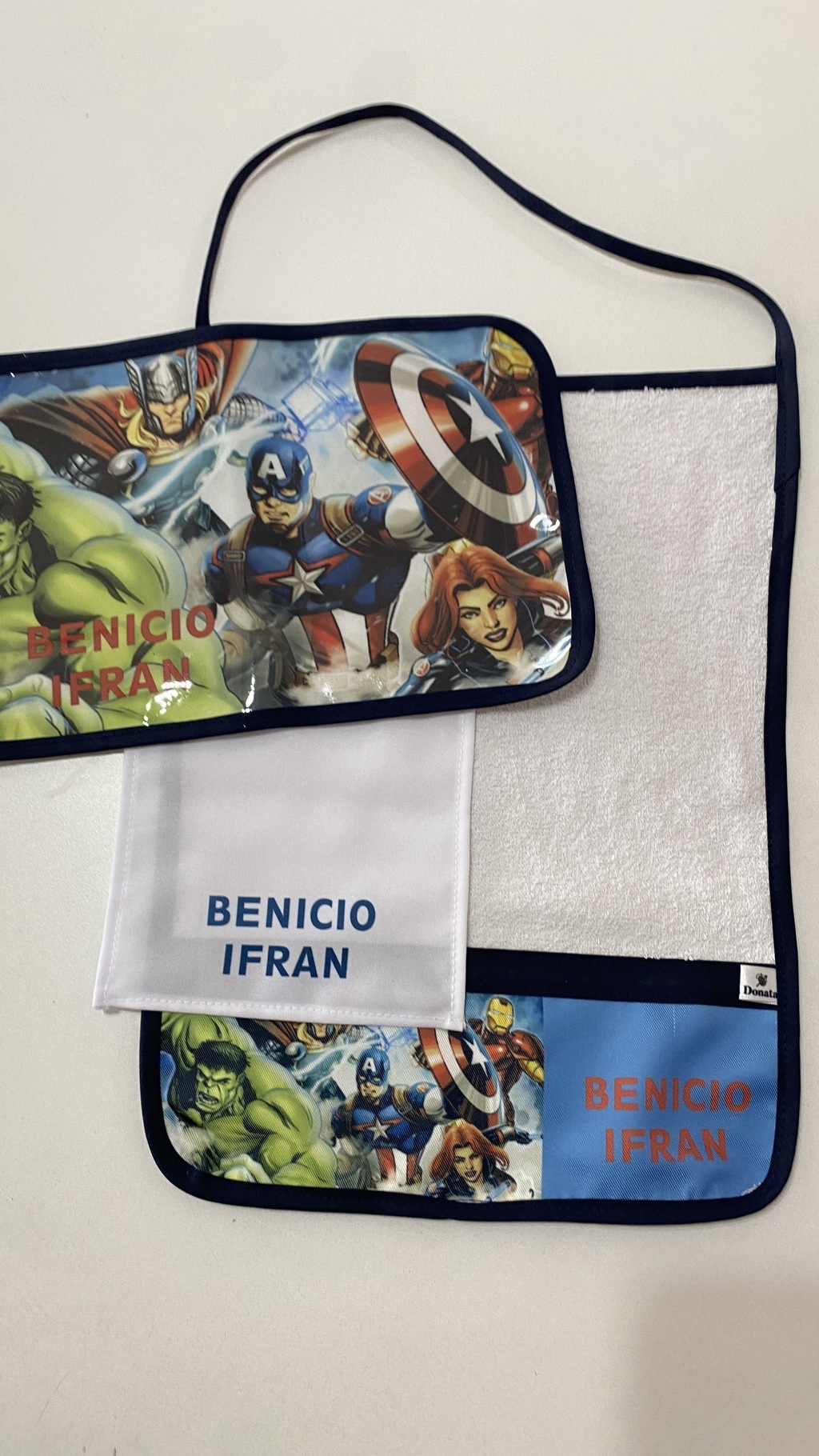 Este set es ideal para que tu niño lleve al jardin y sea super practico ademas con su nombre o hasta su dibujito preferido!